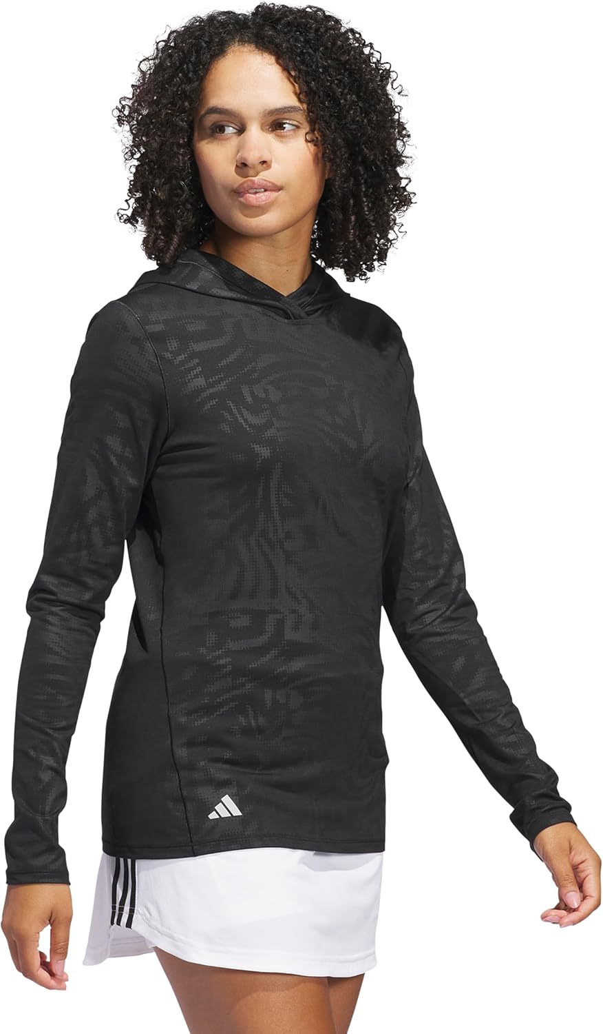 The Ultimate365 Emboss Hoodie is a testament to golf performance with multiple styling. Crafted for the woman who seeks performance versatility both on and off the course, this adidas hoodie offers a slim fit that contours to your body. The knit construction gives it a soft, stretchy feel, while the hood provides extra coverage when you need it. Made in part with recycled materials.