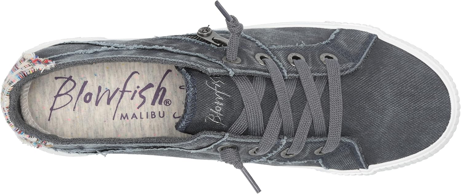 Freshly picked for the season; Fruit by Blowfish Malibu. This low-rise sneaker features a pre-distressed upper with top-stitching, terry cloth lining, slip-on entry, decorative laces, and decorative zipper. Not to mention the ultra-comfortable super foam insole. Added bonus? This style is registered Vegan by the Vegan Society!